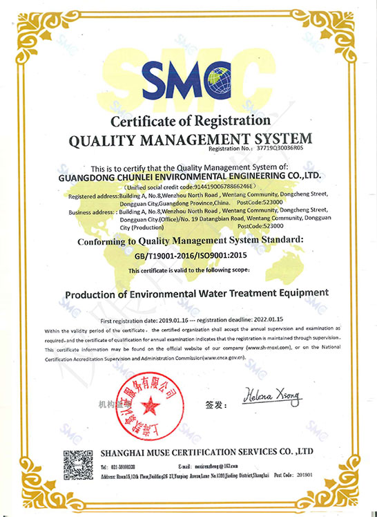 質量管理體係認證證書